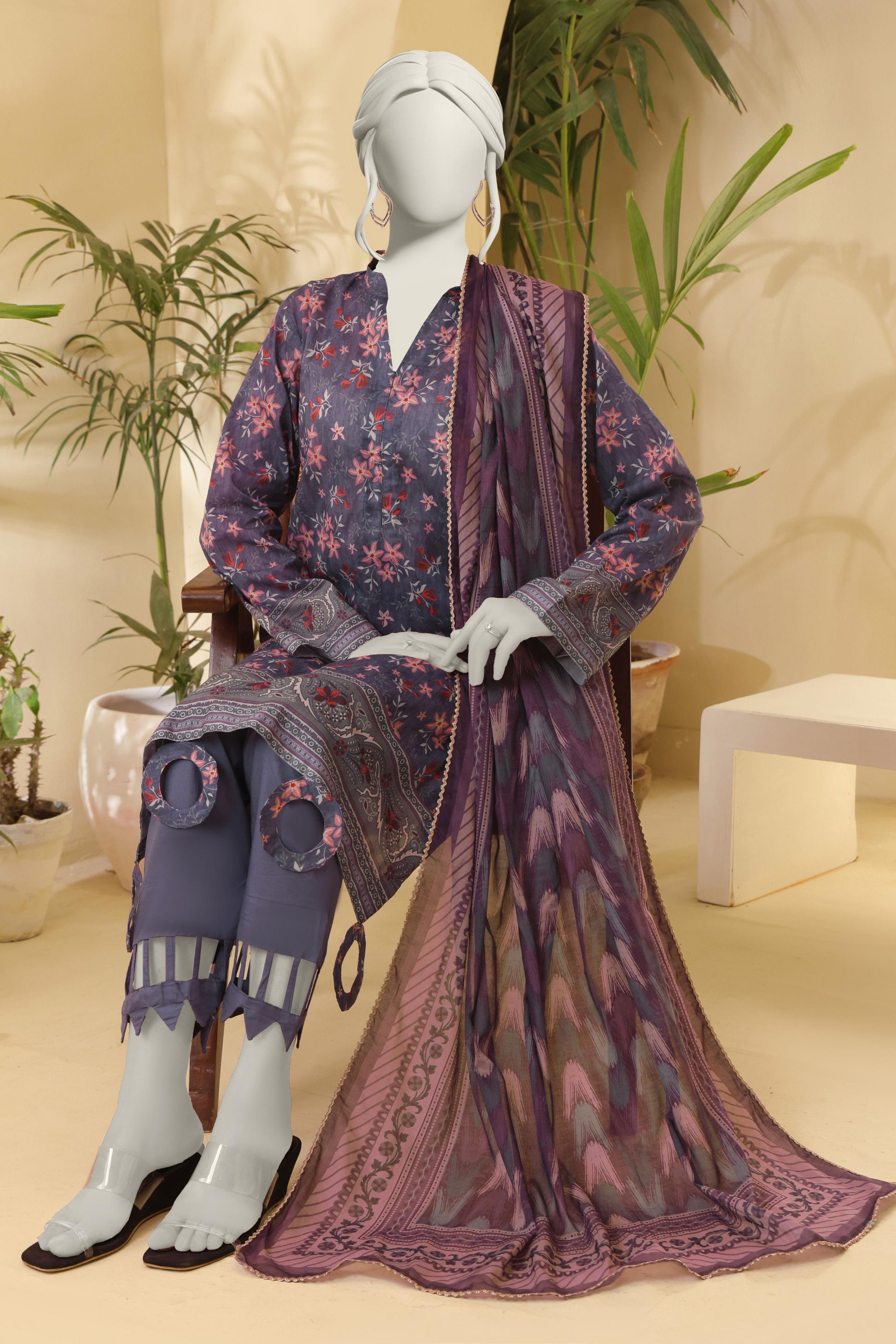 3 Pieces - Almeerah Unstitched Purple Printed Lawn Suit