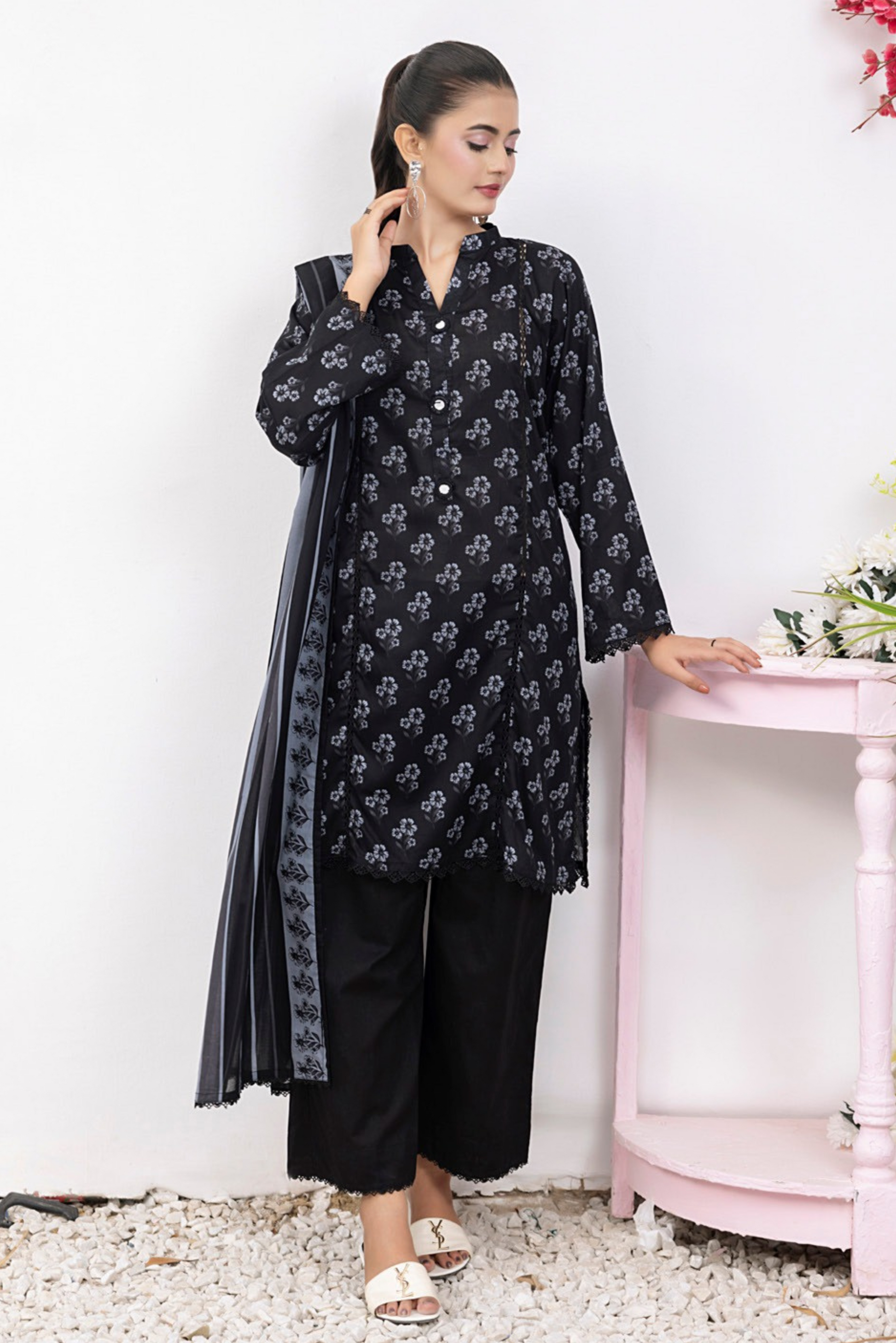 3 Pieces - Regalia Unstitched Black Print Lawn Suit