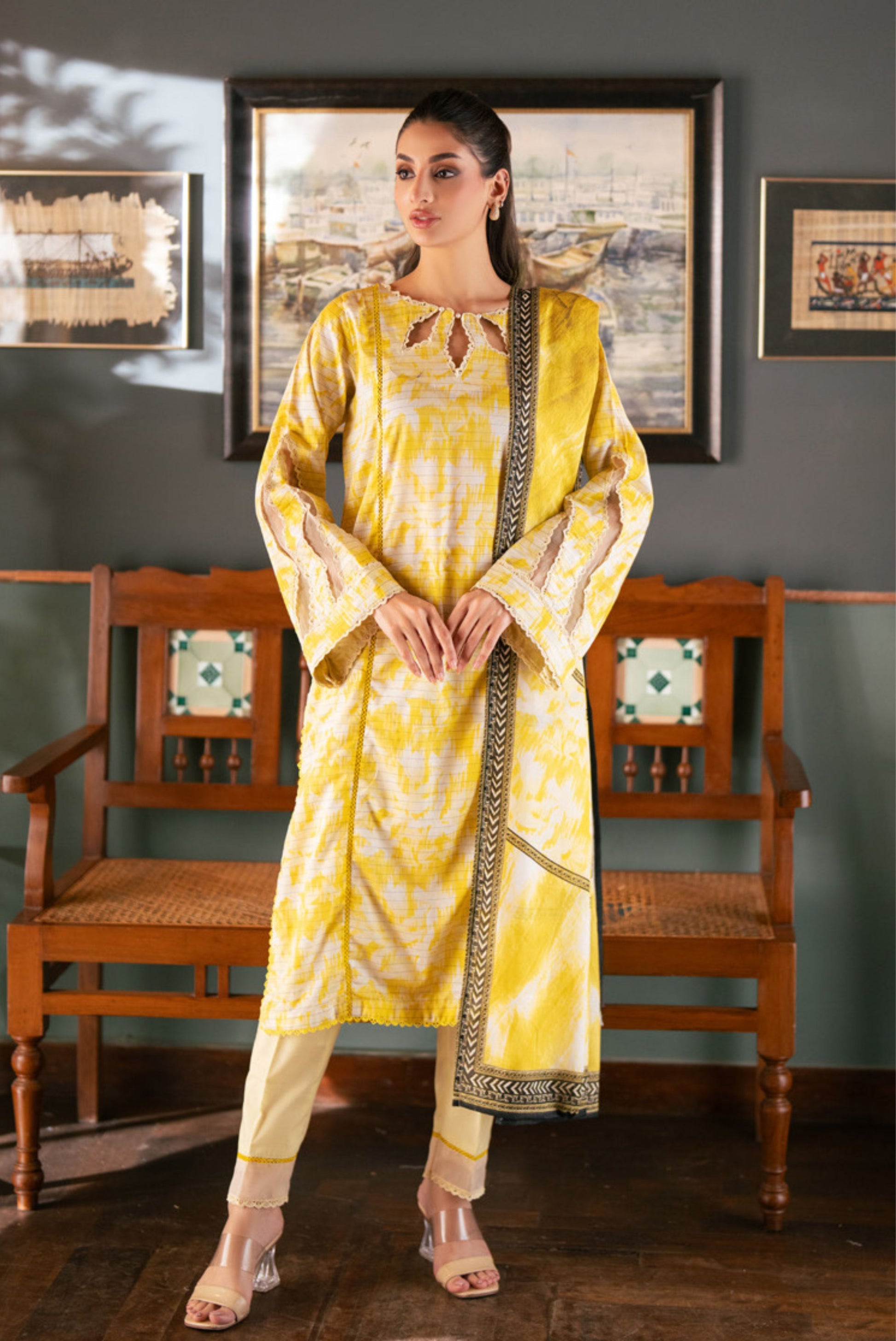 3 Pieces - Regalia Unstitched Pale Yellow Bana Dora Lawn Suit