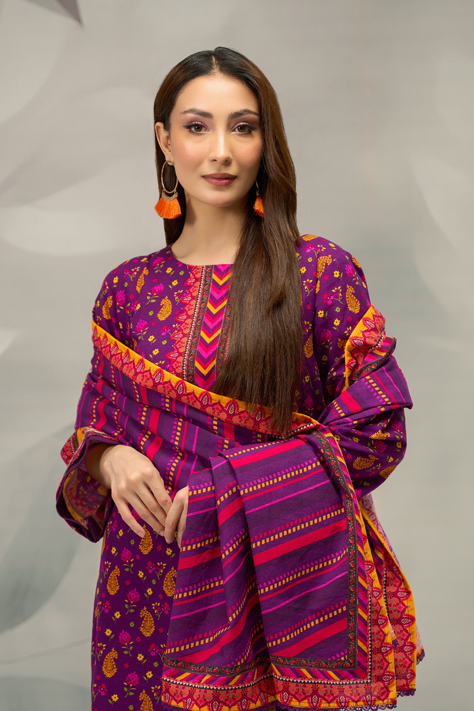 3 Pieces - Regalia Unstitched Purple Printed Khaddar Suit