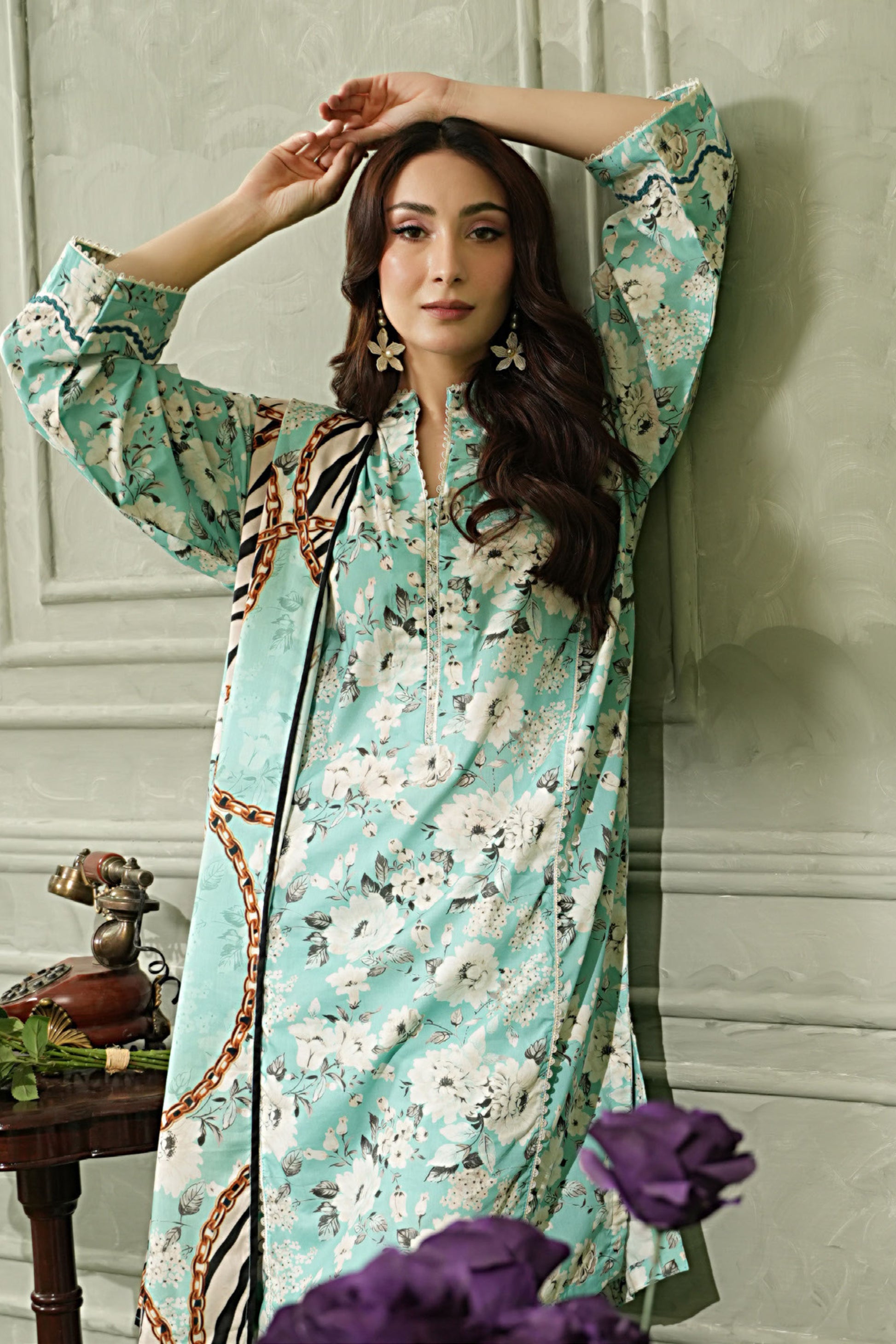 3 Pieces - Regalia Unstitched Sky Blue Printed Linen Suit