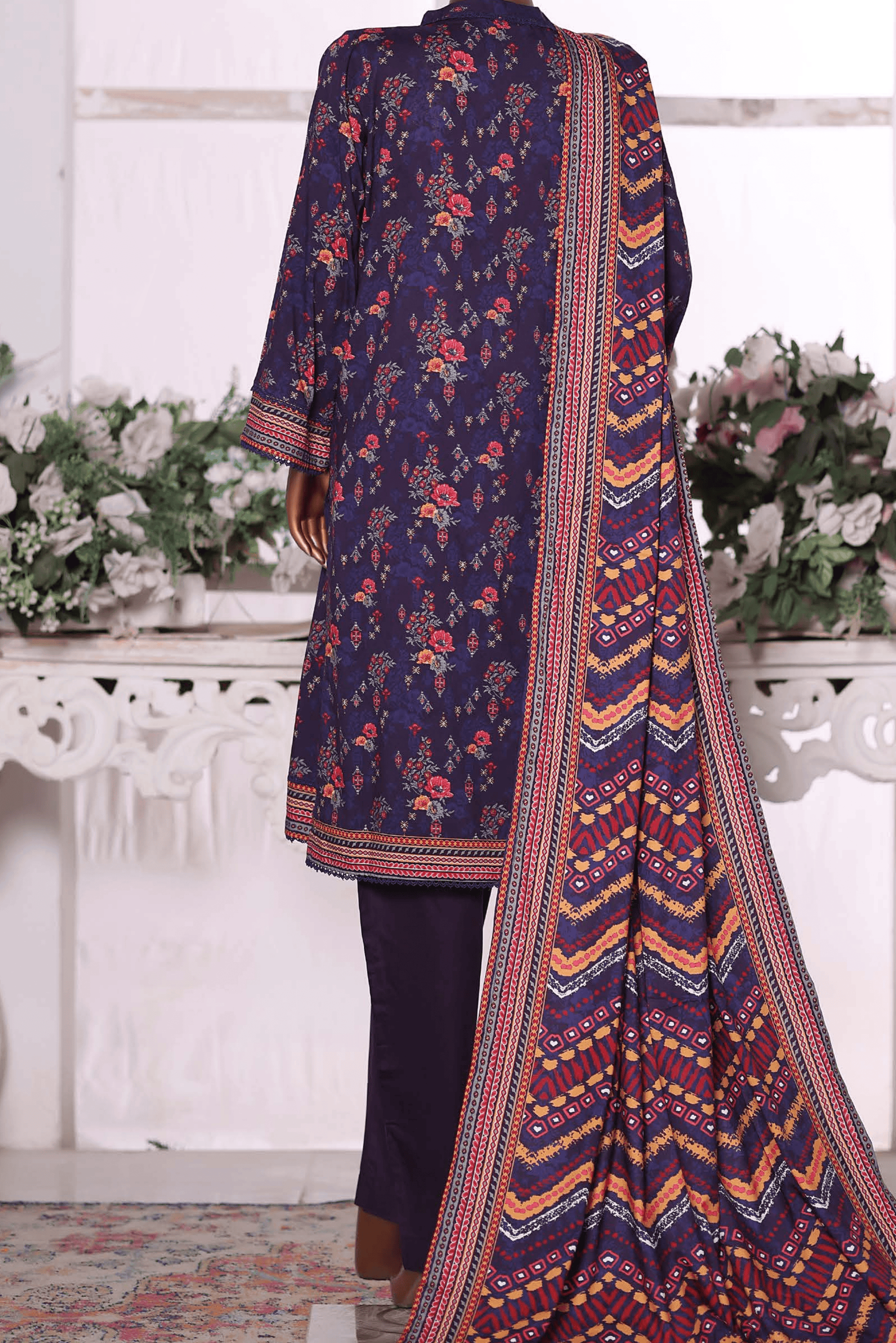 Plain Dobby Viscose Trousers: The trousers are made from solid, dyed Dobby Viscose fabric in a matching light lavender tone. Their simple, unprinted finish provides a clean, balancing foundation, ensuring the heavily detailed prints of the shirt and dupatta are the primary focus.